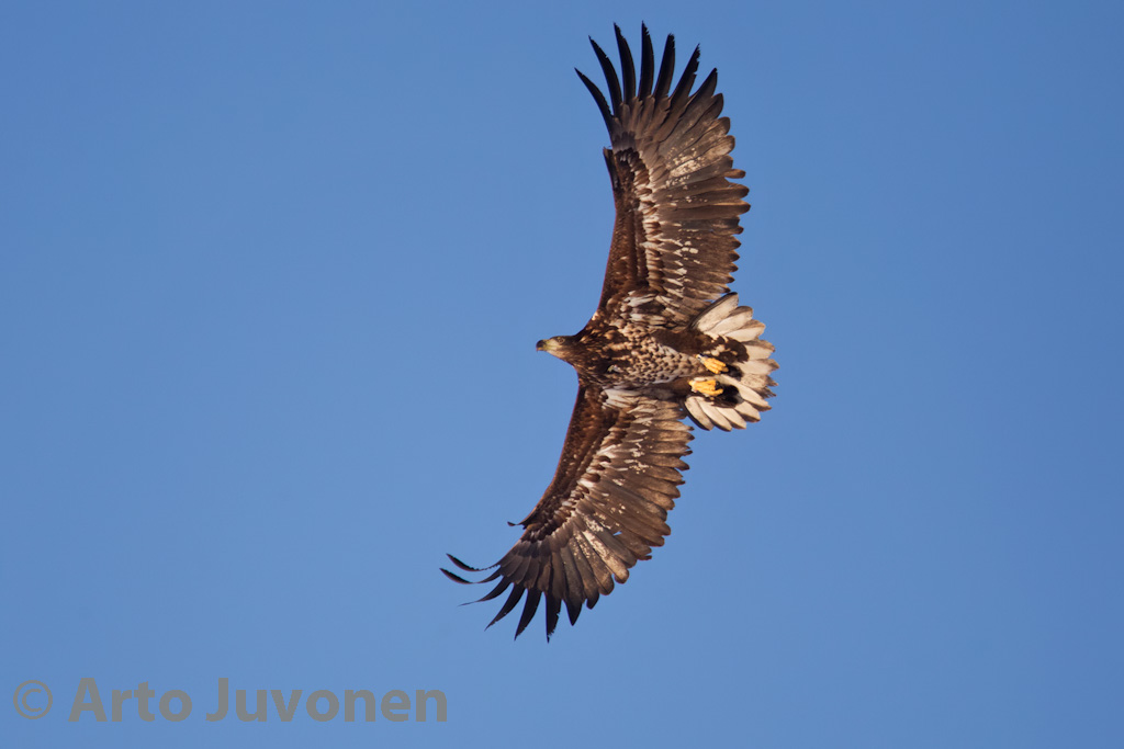 This winter have been very good for White-tailed Eagles here around. Below is a picture of one of flock of nine, that was today over ice near Porvoo. Eagles eat fishes that are left on ice by fishermen