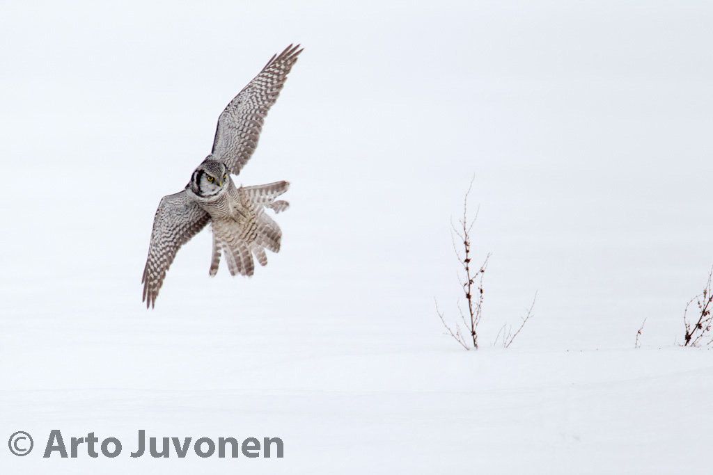 Sunnuntaina ajelin kotiin Myrskylän hiiripöllön kautta. Olisin toivonut kunnon valoja saalistussyöksyn kuvaukseen, mutta oikeastaan hyvin toimi näinkin.