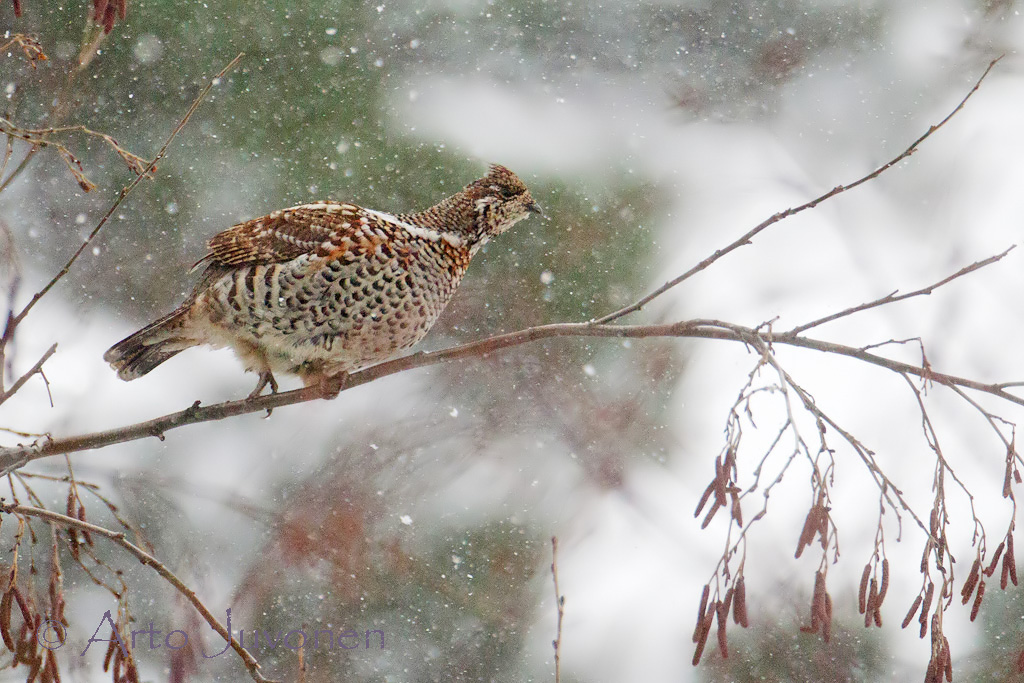 Week's picture is of a female Hazel Grouse at heavy snowing. Below is a picture of shadow of a Capercailie cock.