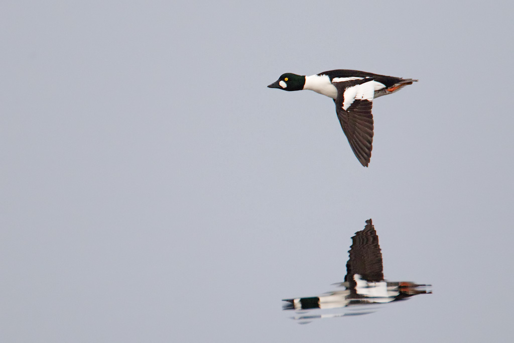 Keskiviikon auringonousun katsoin peltoaukealla kuvaten sodintavia töyhtöhyyppiä ja kiuruja. Sieltä siirryin pian sulalle kumiveneeseen. Maanantain hienoa tunnelmaa en tavoittanut. Viivyin koleassa koleassa koillistuulessa pitkälle iltapäivään, mutta sääkset kävivät vain kahdesti lyhyen aikaa sulan yllä. Korpin ja merikotkan, joka kävi istuskelemassa sulan reunalla, häirintä vaikuttaa varmasti sääksien viihtymiseen. Korpin ja merikotkan yleistyminen vaikuttanee monella tavoin sääksien menestymiseen.