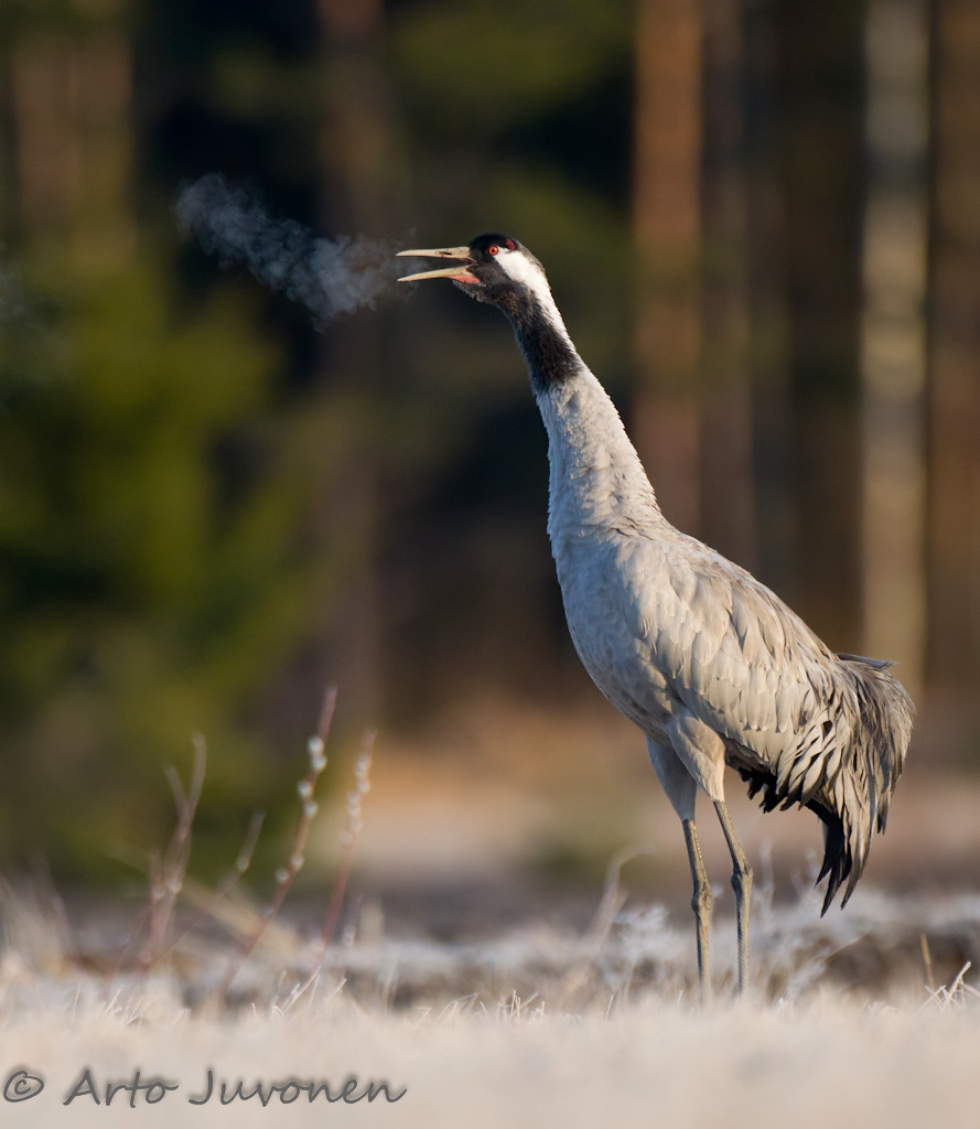 Viikkarin valinta on tällä kertaa helppoa, sillä tämä on ainoa jotensakin kelpo kuva. Kurjen huuto syntyi teerikuvauksen yhteydessä. Olen hakenut Lapinjärven suunnasta hyvää teerien kuvauspaikkaa, mutta ei tunnu olevan helppoa. Vanha kuvauspaikkani Askolassa on edelleen yliveto kuvauksiin. Tämän aamun kuvauspaikalla oli mukavasti teerikukkoja ja kuvausmielessä otollinen täysin tasainen sammalnurmi, mutta kukot soivat hyvin laajalla alueella ilman mainittavia tappeluja (paitsi sitten kun muutama kana tuli pellolle). Pellolle laskeutunut kurki palkitsi kuitenkin aikaisen herätyksen. Soidinpellon reunametsässä piti meteliä pesivä kanahaukkapari.