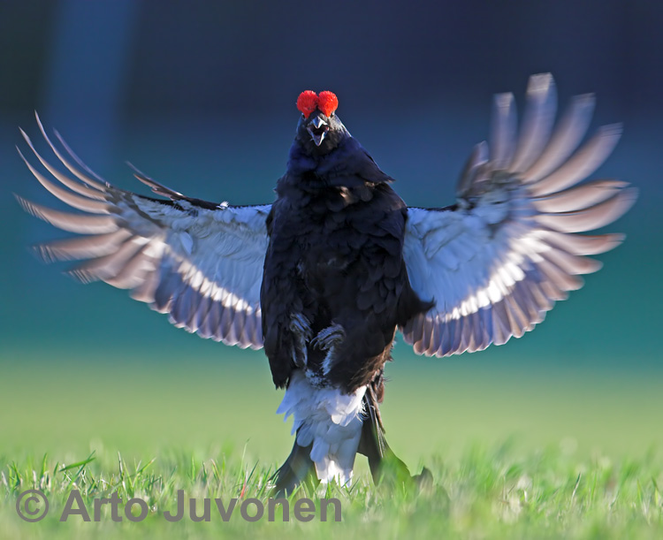 Kaksi valtakoirasta jaksoi runsaan kuukauden ajan saapua joka aamu soitimelle tappelemaan tonttien rajoista. Monena aamuna vain nämä kaksi kukkoa olivat nurmella. Tai olihan alussa mukana kolmas, varsinainen soitimen valtias, mutta se katosi ehkä pedon kitaan. Naaraiden mukana liikkuneet "hännyskukot" kävivät paikalla satunnaisesti, eivätkä juuri uskaltaneet tappeluihin. Nyt nämä kaksi pääkukkoa sitten jakavat naaraat ja muut kukot hyppivät turhaan sivummalla. Höyhenpuvun koreudella ei näytä olevan väliä. Valtakukot ovat repineet toisensa tukoille. Lisäksi toiselta puuttuu kokonaan pyrstön toisen puolen lyyrat ja toisen silmä näyttää vahingoittuneen. Naaraille ei näytä olevan merkitystä puvun koreudella. Arpiset sotaratsut kelpaavat paremmin kuin vahingoittumattomat "hännyskukot". Kaikesta taistelusta ja melskeestä oli palkkana sitten sekunnin verran kestävä hedelmöitys - tällä soitimella yhteensä seitsemälle naaraalle. Turhia aamuja kaikki paitsi nämä viimeiset - vai tekevätkö naaraat valinnan koko kevään katselmuksen perusteella?