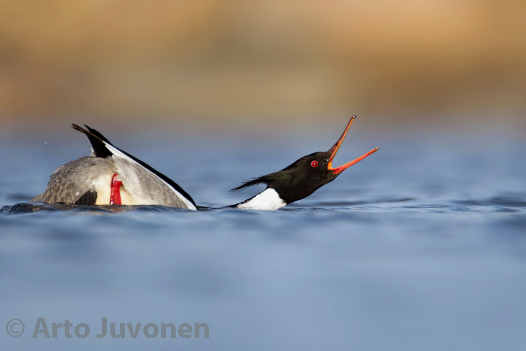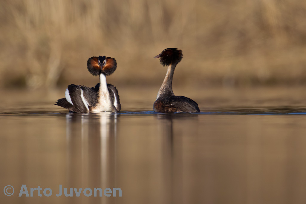 Kuvausviikon ehdoton huippuhetki oli tyynehkö yö merellä. Kuvailin ilta ja aamuvalot tukkakoskeloita, -sotkia, haahkoja, riskilöitä ja vähän pilkkasiipiäkin. Odotan innolla seuraavaa tyyntä jaksoa. Vikkariksi valitsin kuvan tukkakoskelokoiraan soidinelkeestä.