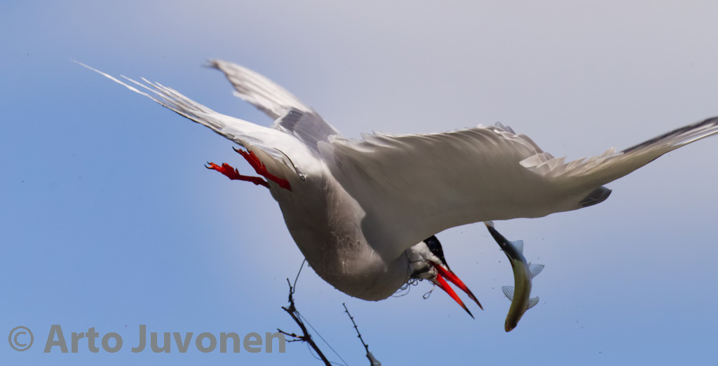 The picture of Common Tern below is a sad story. It has some fishing line around its neck and in bill. It was a good fisher and got three Common Bleaks within rather short period. However it dropped two first ones. Third one the Tern swallowed but with difficulties.