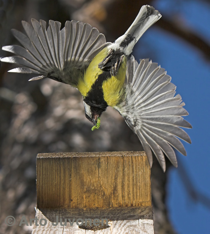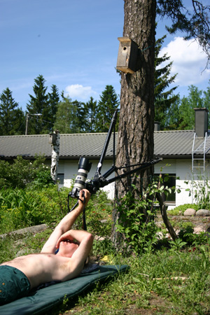 The weeks picture I took at my home garden. It fits well to the first week of vacation, when we had lot of sunshine and a long heat wave. From a picture at left you may see the method. Great Tits were very busy to feed their brood. I just wait, when they arrived and push the button. But it was not easy! To have a Tit at a right position and from right direction to the picture made this quite a challenging. I used three mirrors to reflect sunshine. So I got 1/3200 sec. exposure time with f/5.6.