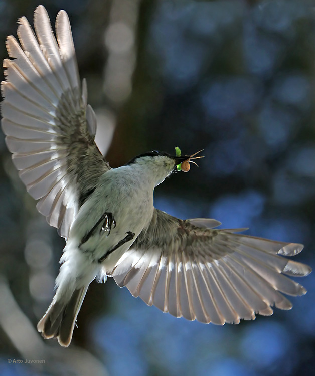 Ensinnäkin käytännössä katkeamaton ketju parhaan laadun jpeg-kuvia 10 kuvaa per sekunti. Etu on suurempi kuin osasin ennalta ajatella. Viikon kuva on yksi tämän edun aikaansaannoksia. Toiseksi kuvan laatu 800 ASA herkkyydellä on mielestäni aika lailla sama kuin 200 ASA D20:llä. Korkea ASA-luku mahdollisti f/5.6 aukon käytön valotusajalla 1/4000 sekuntia. Pienempi aukko taas tarkoittaa laajempaa syväterävyyttä ja siksi enemmän tarkkoja kuvia. Kolmas merkittävä parannus on nopeampi tarkennus. Ero D20:iin on selvä, vaikkakaan tietojen mukaan ainakaan merkittävää parannusta Mark II:een ei ole. Ehkä tästä tulee vielä erilaisia asiantuntevia arvioita. Niin ja sulkimen silence-toiminto on hyvin tarpeellinen monissa kojukohteissa. Kameran manuaalissa olen päässyt suurin piirtein sivulle akun lataus, joten paljon on vielä opittavaa. Akusta puheen ollen, manuaali lupaa 2200 laukausta täydelle akulle. Nyt on 1800 kuvaa otettu. Olen käyttänyt paljon takakannen näyttöä. Silti kameran varaus näyttää vielä yli 50% eli kolme tolppaa. Kesälämpötiloissa yhdellä akulla selviää siis pitkään. Adobe Lightroomilla ei vielä ole käännöstä Mark III:sen raw-kuville. Koska en aio välivaiheessa opetella Canonin omaa muunnosohjelmaa, olen kuvannut pelkkää jpeg:iä. Tästä onkin seurannut suuri houkutus siirtyä pelkän jpeg.in käyttäjäksi. Raw-kuvien käsittely laahaa nytkin yli puoli vuotta jäljessä. Jpeg-kuvien siirtäminen lajikansioihin olisi paljon suoraviivaisempaa. Loppujen lopuksi tulee aika harvoin tilanteita, jolloin vääntöä raw-kuvista oikeasti tarvitaan. Asiakkaat käyttävät pääasiassa jpeg-kuvia joka tapauksessa. Käsittelyn yksinkertaisuuden edun lisäksi Jpeg-kuvilla kamerassa on tajuton 110 kuvan puskuri 10 kuvaa per sekunti ja kortille mahtuu merkittävästi enemmän kuvia. Mietin vakavasti raw-kuvien hylkäämistä… Viikon kuva toistaa paljon edellistä. Kuva on otettukin samalla metodilla, mutta laji on sentään eri ja kuvakin mielestäni parempi. Pihamme kolmas pönttöasukki on tervapääsky. Siinä onkin sitten haastetta heinäkuulle…
