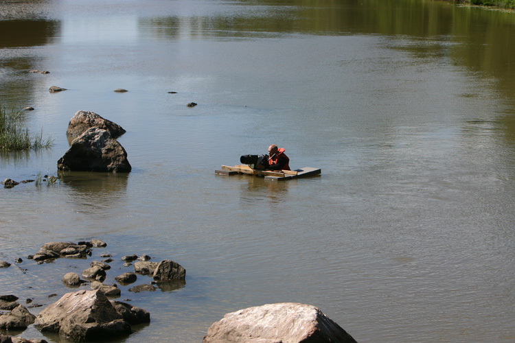 Ja sitten se pahin! Kamera teki tilapäisen lakon, kun siirryin koskelta suoraan kuumaan piilokojuun. Muutaman kuvan kojussa otettuani toiminta lakkasi. Kamerasta kuului pehmyttä raksahtelua, kuin sisällä olisi jokin ollut jumissa. Näyttöön tuli virheteksti ohjeilla käyttää akku ulkona ja virta poissa. Useat eri yritykset eivät auttaneet. Purin harmini parin tunnin pyörälenkillä ja kun sieltä palasin kamera toimi taas! Ilmiselvästi kyse oli kosteusongelmasta, viileästä veden pinnasta äkillinen siirtyminen kuumaan ja kosteaan. Koskella kamera ei taatusti saanut suoraa kosteutta. Ei ammattilaisvehje voi näin toimia! Korostan, ettei D20:llä ollut koskaan mitään vastaavia ongelmia. Joka tapauksessa viikon kuvassa on yksi kuva kolmelta koskella vietetyltä parituntiselta. Alhaalla on kuva siitä, kuinka tiiroja kuvasin. Arvatkaa, onko ollut uteliaita!