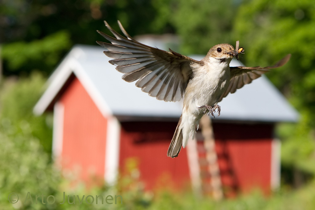 Days of midsummer are quiet. There is nothing much to photograph. Once again I have started with Pied Flycatchers in my garden. Also I took pictures when a brood of around seven Blue Tits flew out from box. Palauteosio ei ole toistaiseksi käytössä