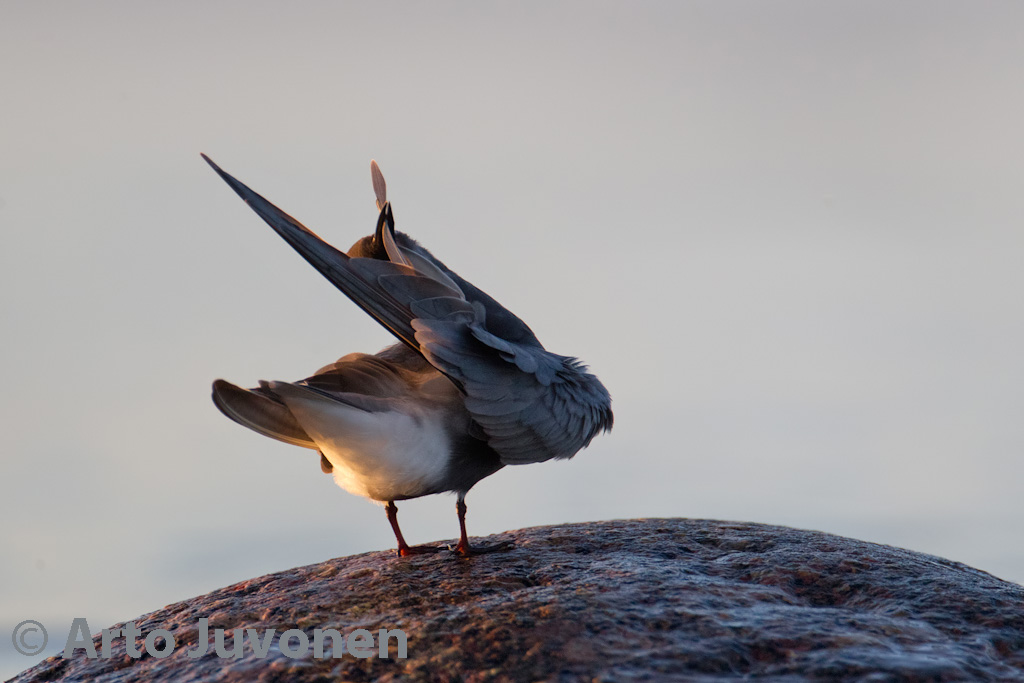 Black Tern is a rare bird here around; I don't see it every year neither I have never before managed to get any real good pictures of the species. This time was a surprise to see a Black Tern out at sea, where I was aim to photograph a colony of Arctic and Common Tern. Now the target changed to the Black Tern. The best picture I got at a very last beams of the setting Sun.
