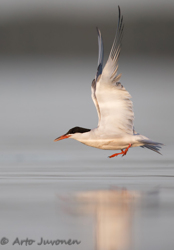 Perjantai-iltana merellä tunnelma oli vielä todella taivaisssa. Aivan upea tyyni keli, hieno auringonlasku ja luvassa oli vielä hieno yö puuttoman ulkoluodon kalliolla vietettynä. Majoitusluotoni rantaa kiertäessäni eteeni lennähti vanha punakuiri, jonka punaa juuri taivaanrantaan painuvan auringon säteet hienosti syvensivät. Maininkia oli vielä yllättävä paljon, jolloin kameran tarkennus ja tarkentaja olivat todella kovilla. Valo ja tilanne parani koko ajan, kunnes kameran näyttöruutuun tuli yhtäkkiä punerva (ehkä auringon värjäämä) kalvo ja kamera hiljeni. Hätäännyin jo hetkeksi, kunnes muistinn, että jo edellisessä kohteessa olin todennut akun olevan vähissä, ja että se piti vaihtaa ennen seuraavaa paikkaa. No en muistanut vaihtaa sitten. Ei se mitään, tästähän voi jo siirtyä makkaran paistoon, mietin. Nousin kalloille ja lähdin kävelemään kohti leiriä. Kameran heilahdellessa kävellessäni, sen sisältä kuului outoa todella ikävän tuntuista helinää, eli jotain oli sittenkin tosi pahasti vialla!? Erotin kameran objektiivista ja kokeilin, että helinä tuli objektiivin puolelta. Takaa linssistöä katsottaessa sisällä näkyi joku irti heiluva linssi ja jotain lankaa. Vakain oli sitten kait hajonnut?