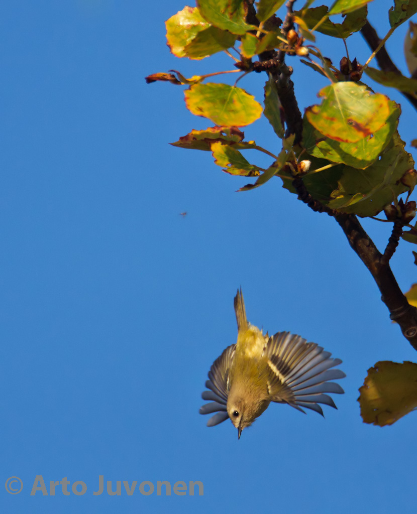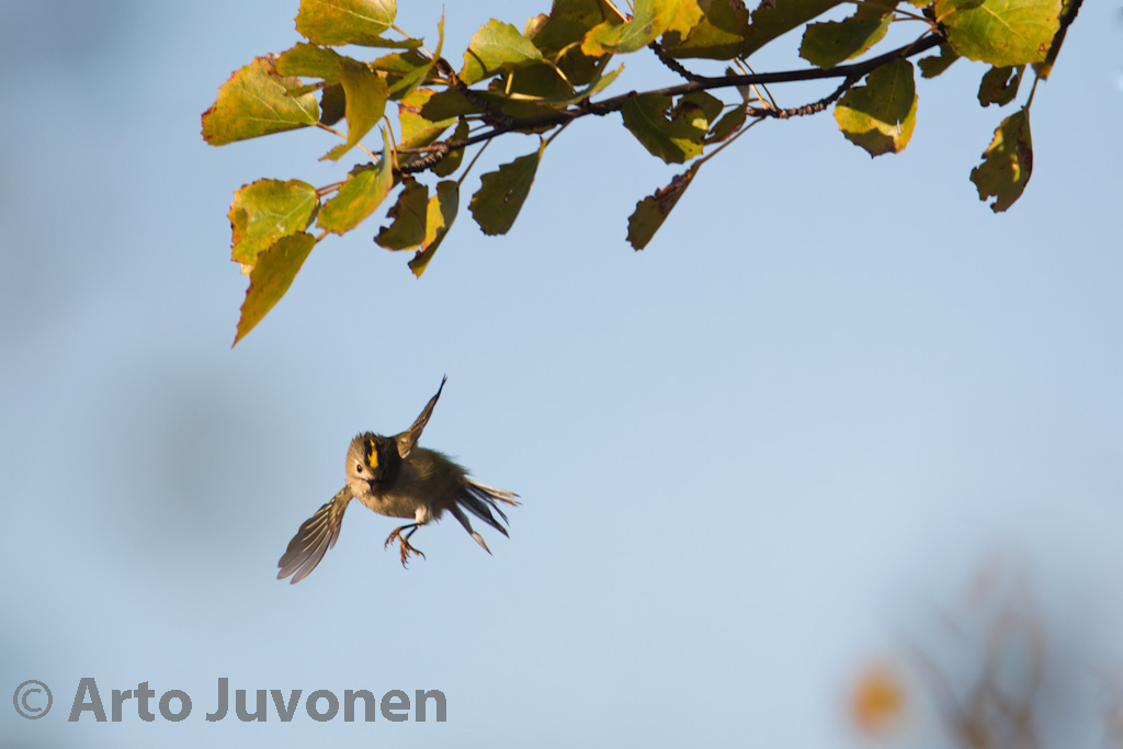 From Friday 1th to Monday 4th October I was at Söderskär Lighthouse islands 30 kilometers South East from Helsinki. The main target of the trip was to take pictures of migrating Long-tailed Ducks, to which purpose the Islets are the best place in Finland. I was lucky to see the best migration of the Century. We counted 59 000 Long-tailed Ducks passing by the Island on Monday morning, and even better quite big part of migration got into inner route North of the Lighthouse, where the flocks were able to photograph in good light. However I'll put here a picture of Goldcrest as yhe weeks picture and leave pictures of Long-tailed Ducks to the next week. |