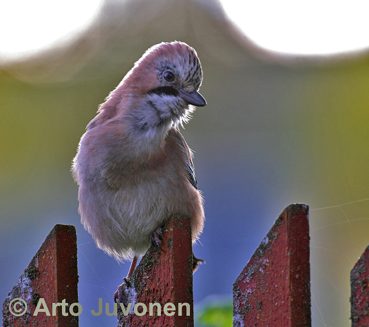 Pystytin kuvauskalustoni tänään aidan ääreen. Aidan takaa kurkotteli oksiaan iso tammi, jonka terhoja närhet keräsivät varastoihinsa. Yritys oli saada vastavalokuva närhistä aidalla. Muutama onnistui. Monen tunnin yrityksen jälkeen voisi jo kuvitella, että nyt närhi ja tammenterhot on kuvattu aihe. Vielä jäi kuitenkin parannettavaa. En muista nähneeni missään kuvaa närhestä kaikki päälaen höyhenet harjana päälaella ja siiven sinivalkea kuvio signaaliksi levitettynä. Nyt sain sellaisen melkein hyvän, mutta hyvää kannattaa vielä yrittää.