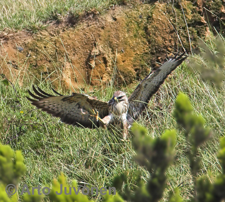 Azores is said to name erroneously based on açor, as is name of Goshawk on Portuguese. Because Goshawks have never existed in Azores, it is thought to be meant Buzzards. Most probably there have not been any mammals on the islands before humans and there is not Lizzards like for example at Canary Islands, Grasshoppers may have been main prey for Buzzards. In the weeks picture an Azores Buzzard (or should be Common Buzzard) Buteo b. rotschildi had missed to catch a Grasshopper.