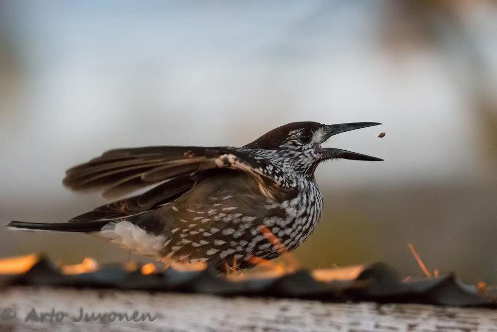 Now I had to change the species into the place of picture of the week. Spotted Nutcracker from eastern woods have arrived into Finnish Parks. Nutcrackers are now busy to collect seeds of Makedonian Pines (Pinus peuce) for the winter.