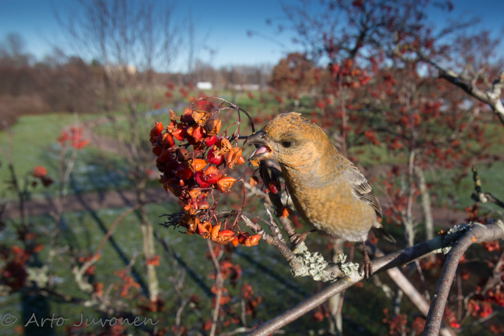 Laji viikonkuvaan oli jo aika vaihtaa. Pähkinähakkeja on nyt helposti kuvattavissa puistojen makedonianmännyissä. Viikkari syntyi kuitenkin jo aiemmin yllättävässä tialnteessa, jossa kameran säädöt sattuivat jäämään ääriasentoihin. ISO-25600 kuvasta näyttää kuitenkin tulevan nettikäyttöön ihan siedettävä kohinanpoiston jälkeen. Lisäkuviin laitoin pari laajakulmataviokuurnaa torstailta.
