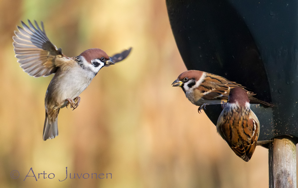 I have now over one hundred Tree Sparrows at our garden of summer cottage. Most favor food for them is seeds of Millets. I'm happy to have those elusive and noisy birds in my garden, specially now when everything else is so dark and quiet (still waiting for snow).