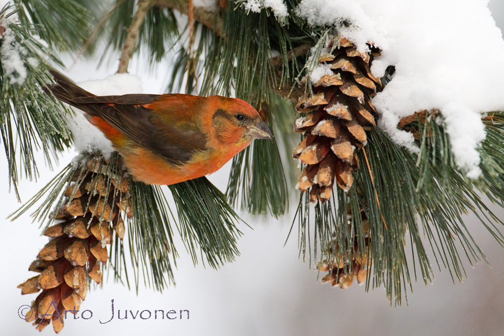 Pikkukäpylintu Common Crossbill Loxia curvirostra Lapinjärvi, Finland, 12.12.2010 Canon EOS 1D Mark IV, EF 500 mm F/4 L IS USM, f/4.5, ISO-2000, 1/2000 sec, tripod used |