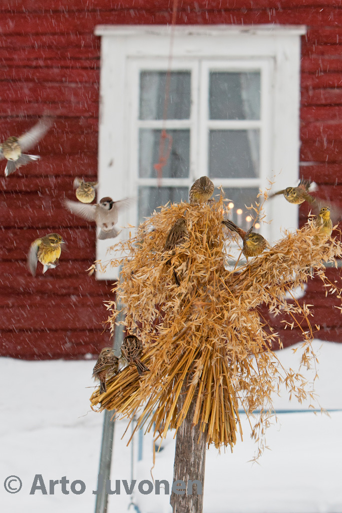 The week's picture I took a week ago at Boxing Day. In Finland we have a tradition to keep sheaf's out for winter birds, especially during Christmas time. Yellowhammers are most typical birds to seen on those.