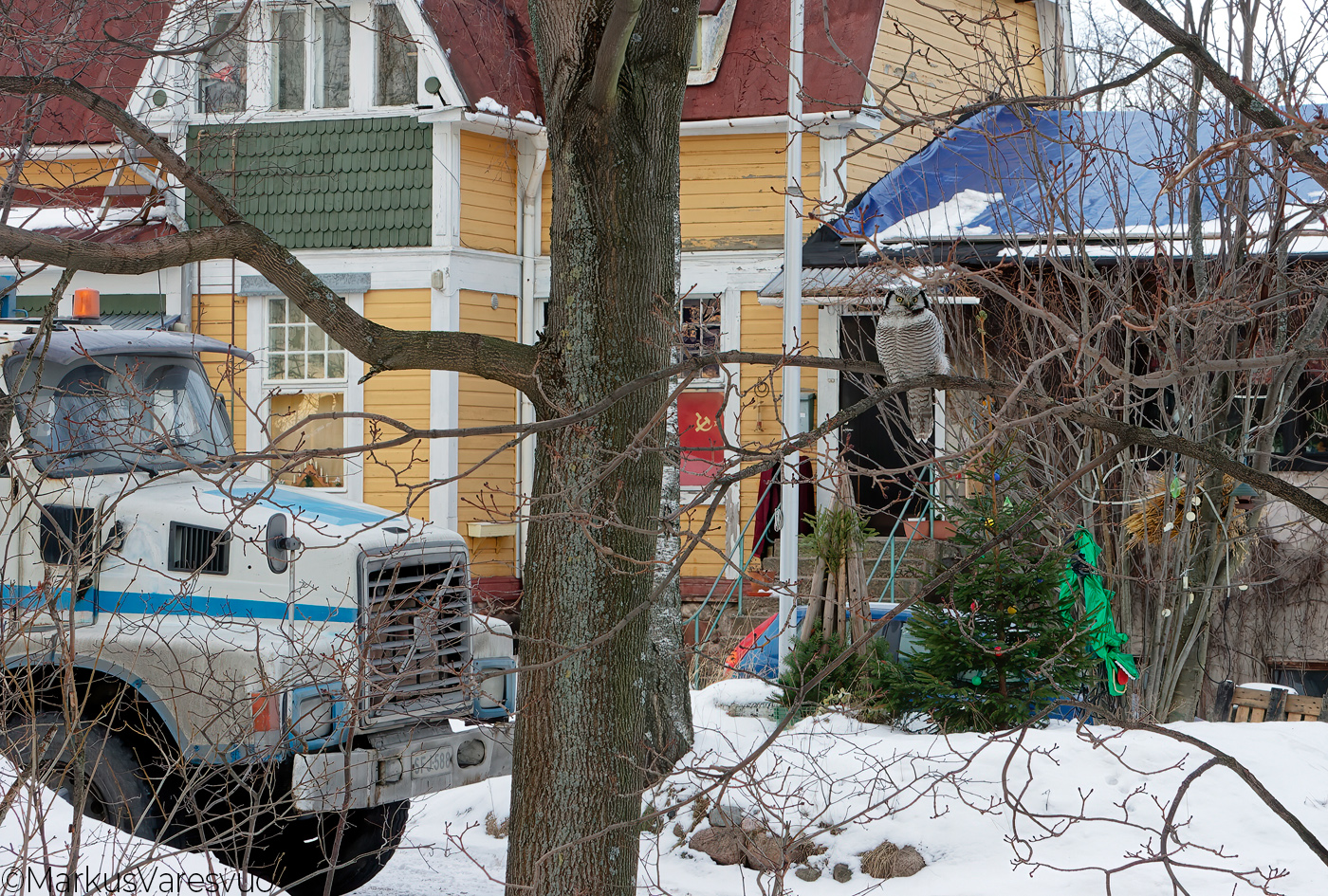 Aperture F-number f/14.0 Exposure Time: 1/60 ISO: 640 Image information: Hawk owl (Surnia ulula) Helsinki Finland January 2006