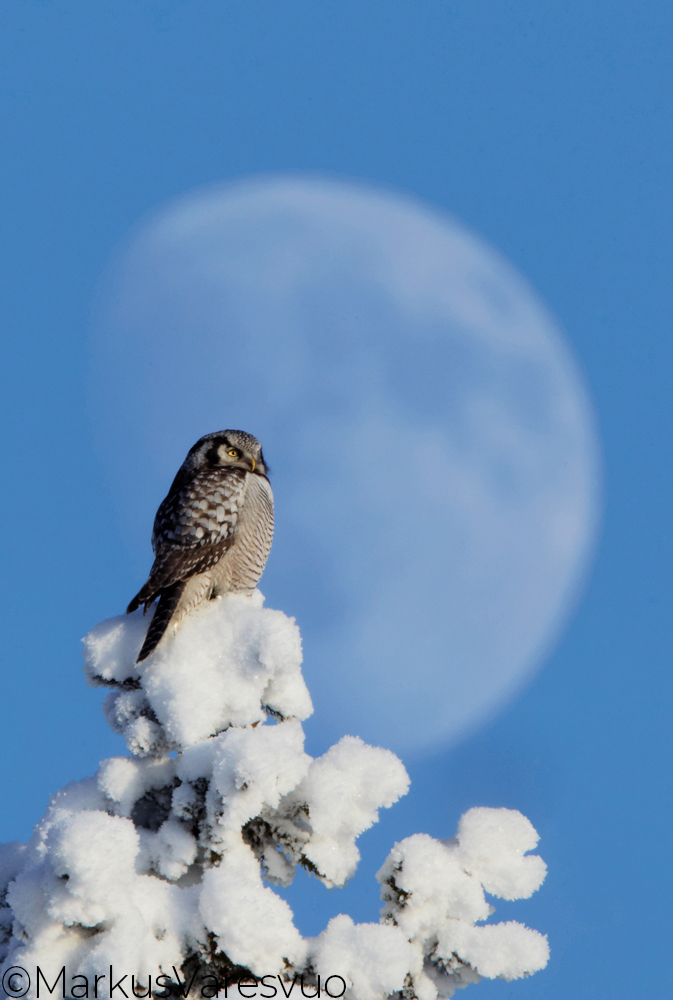 Aperture F-number f/29.0 Exposure Time: 1/160 ISO: 800 Image information: Hawk Owl (Surnia ulula) Kuusamo Finland February 2011 Time from camera: 2011:02:14 Copyright: Markus Varesvuo Pursilahdenranta 2B22 00980 Helsinki Finland +358405033831 markus.varesvuo@lintukuva.fi Camera: Canon EOS-1D Mark IV Focal Length: 1120/1 | |