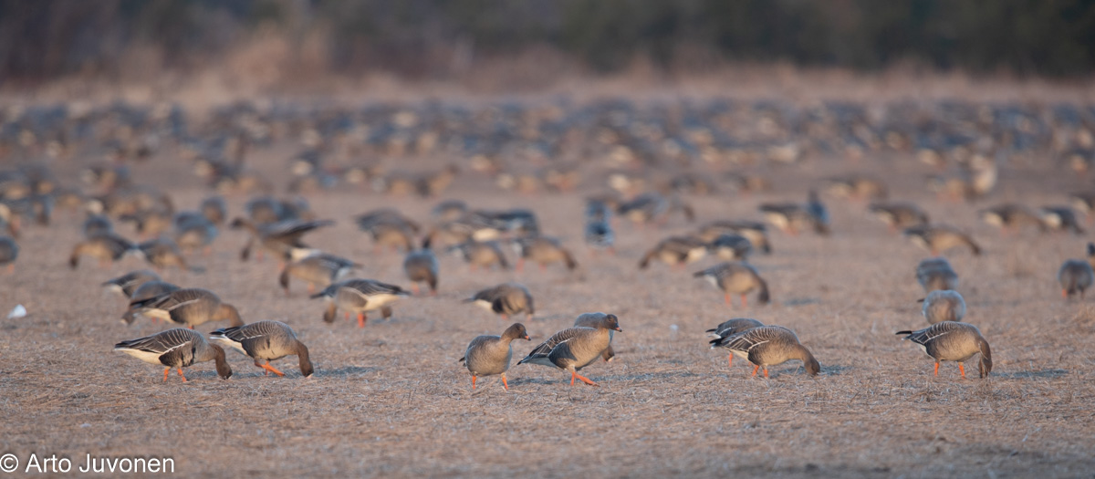 Aperture F-number f/5.6 Exposure Time: 1/160 ISO: 400 Image information: Anser fabalis rossicus & A. albifrons; Tudra Bean Goose & White-fronted Goose; Tundrametsähanhi ja tundrahanhi Time from camera: 2020:03:28 Copyright: Arto Juvonen Camera: Canon EOS-1D X Mark II Focal Length: 840/1 | |