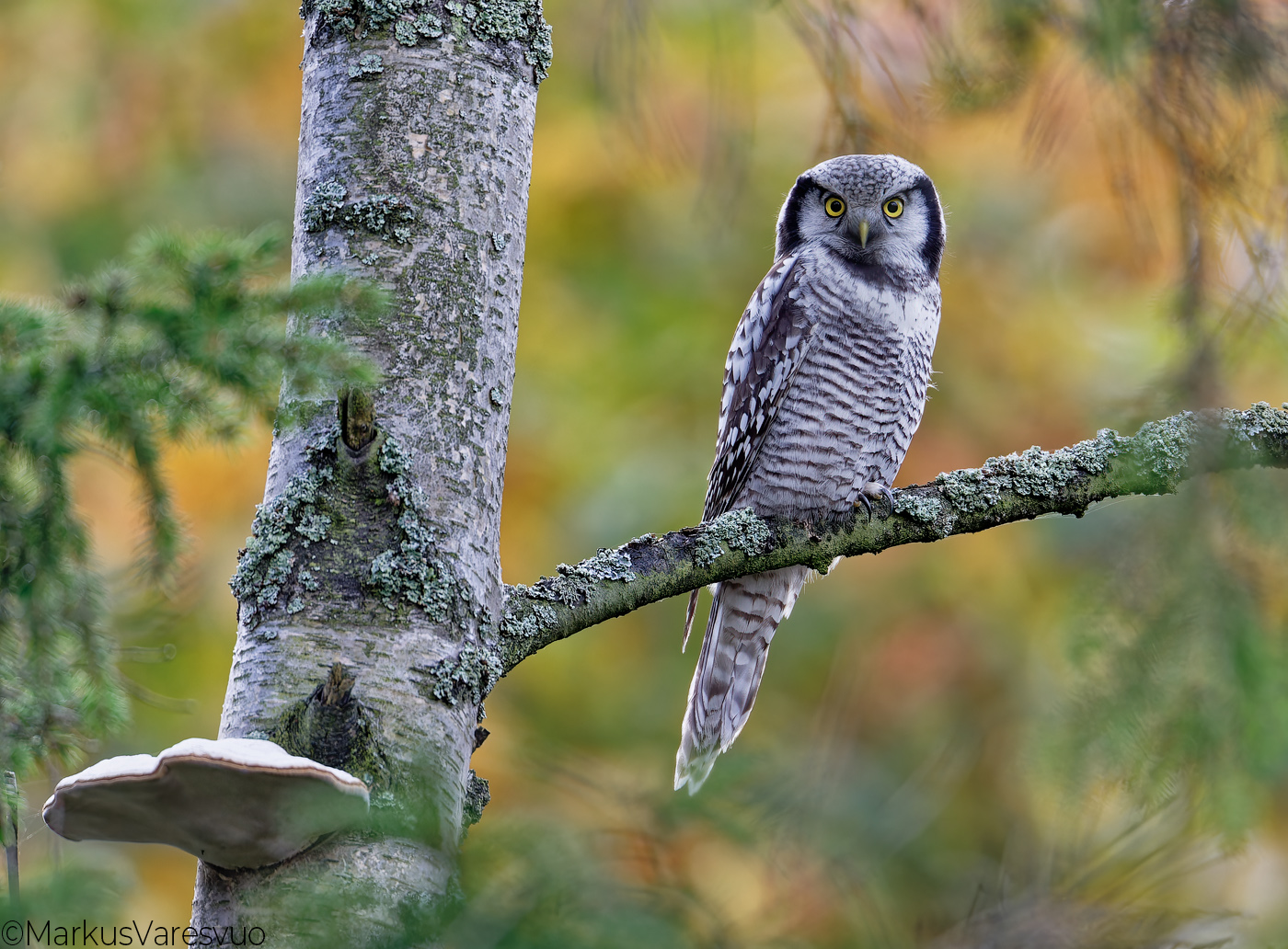 Aperture F-number f/5.6 Exposure Time: 1/160 ISO: 400 Image information: Hawk Owl (Surnia ulula) Helsinki Finland October 2005 Time from camera: 2005:10:20 Copyright: Markus Varesvuo Pursilahdenranta 2B22 00980 Helsinki Finland +358405033831 markus.varesvuo@lintukuva.fi Camera: Canon EOS-1Ds Mark II Focal Length: 700/1 | |