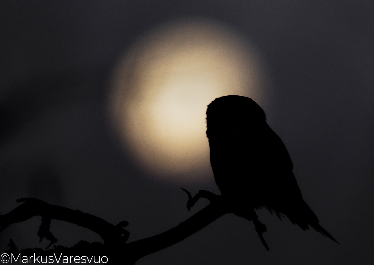 Aperture F-number f/4.0 Exposure Time: 1/1250 ISO: 3200 Image information: Hawk Owl (Surnia ulula) and the full moon Helsinki Finland November 2018 Time from camera: 2018:11:24 Copyright: Markus Varesvuo Pursilahdenranta 2B22 00980 Helsinki Finland +358405033831 markus.varesvuo@lintukuva.fi Camera: Canon EOS-1D X Mark II Focal Length: 600/1 | |
