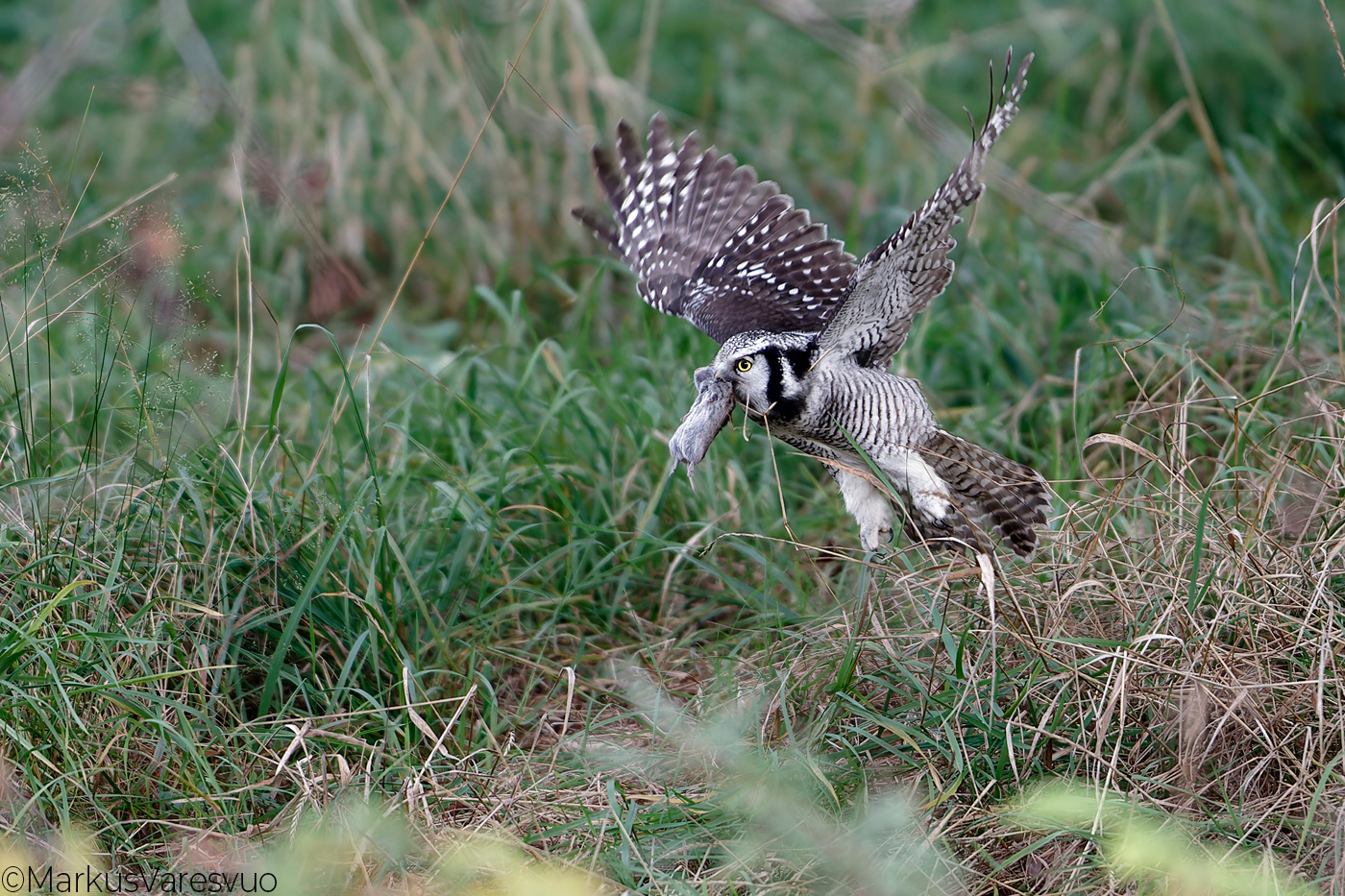 A vole as a prey. Time from camera: 2005:10:20 Copyright: Markus Varesvuo Pursilahdenranta 2B22 00980 Helsinki Finland +358405033831 markus.varesvuo@lintukuva.fi Camera: Canon EOS-1D Mark II Focal Length: 300/1 | |