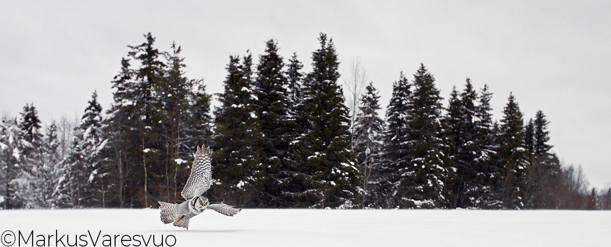 Aperture F-number f/2.8 Exposure Time: 1/5000 ISO: 5000 Image information: Hawk Owl (Surnia ulula) Kuusamo Finland February 2016 Time from camera: 2016:02:21 Copyright: Markus Varesvuo Pursilahdenranta 2B22 00980 Helsinki Finland +358405033831 markus.varesvuo@lintukuva.fi Camera: Canon EOS-1D X Focal Length: 24/1 | |
