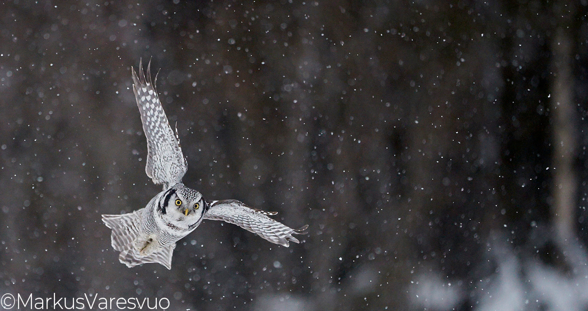 Aperture F-number f/2.8 Exposure Time: 1/4000 ISO: 6400 Image information: Hawk Owl (Surnia ulula) Kuusamo Finland February 2016 Time from camera: 2016:02:21 Copyright: Markus Varesvuo Leikosaarentie 31B49 00990 Helsinki Finland +358405033831