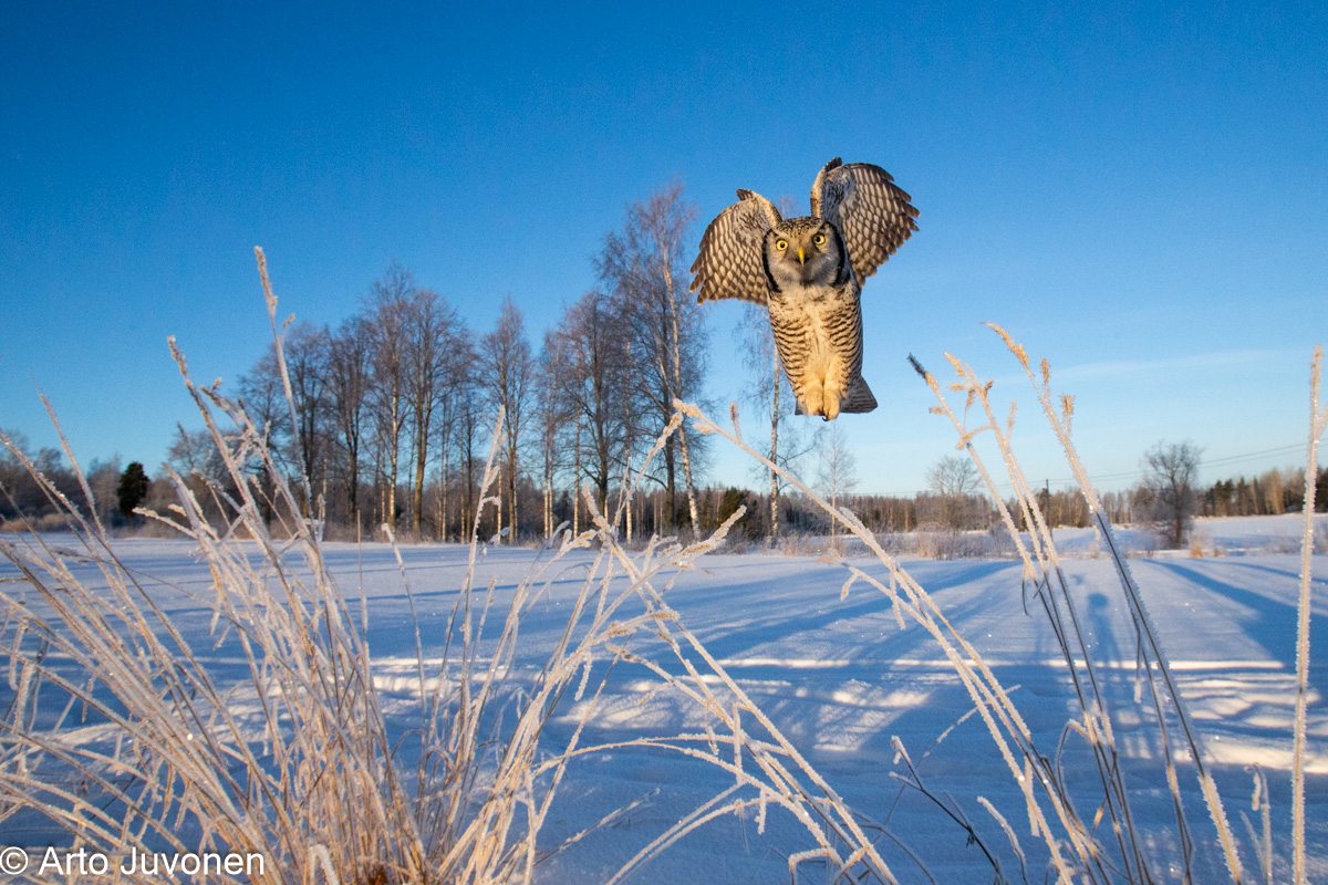 Image information: Surnia ulula; Hawk Owl; Hiiripöllö. Loviisa, Finland