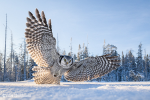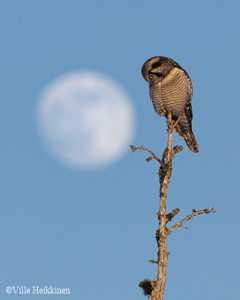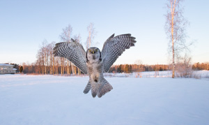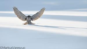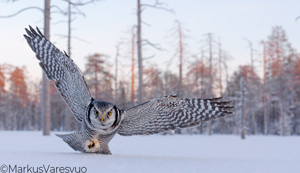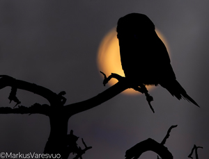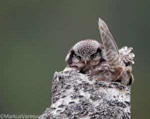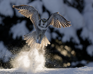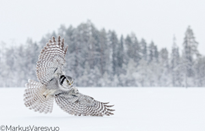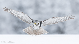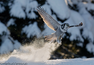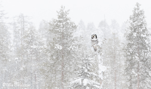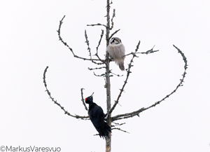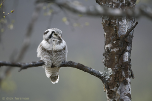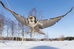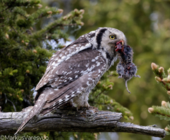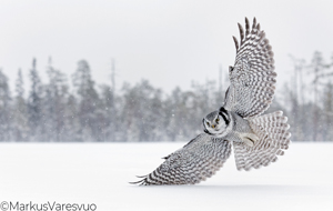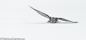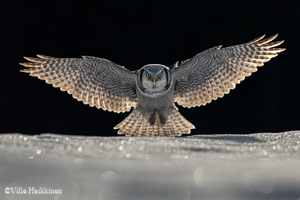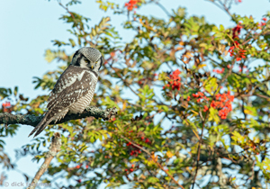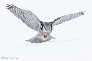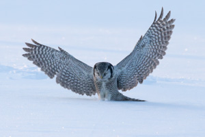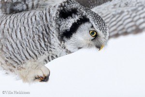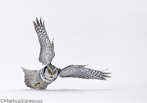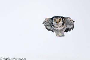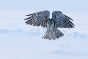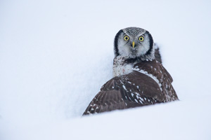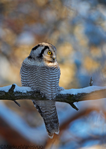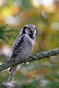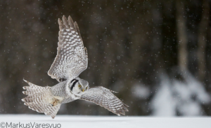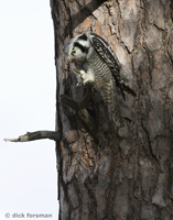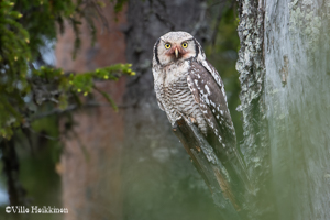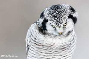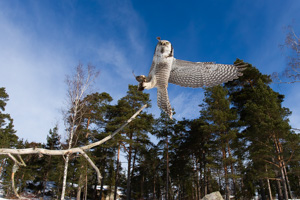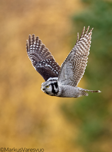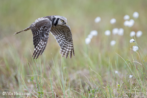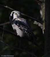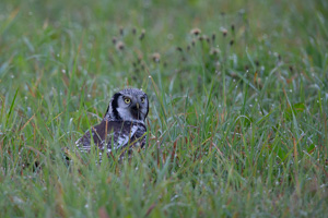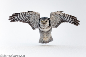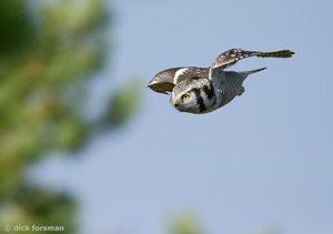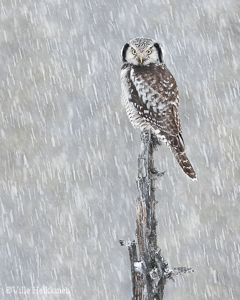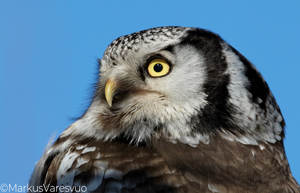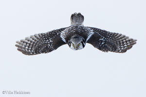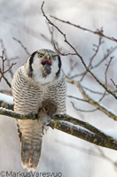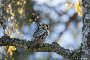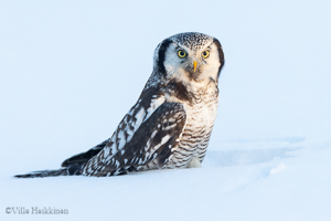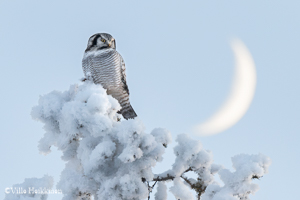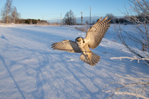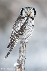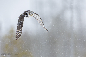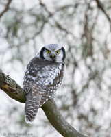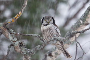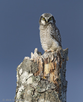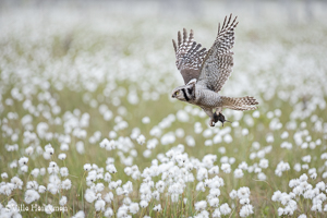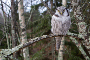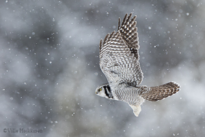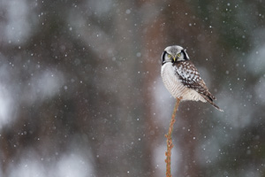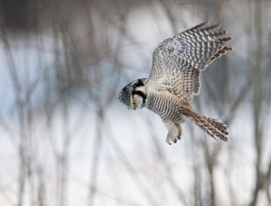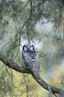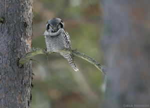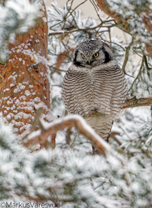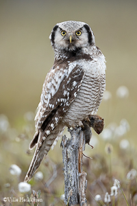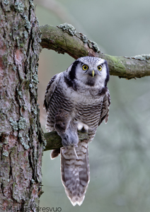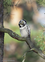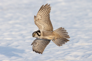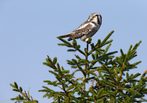 Surnia ulula, (IN)Northern Hawk Owl, (FI) hiiripöllö, (DE) Sperbereule, (SV) hökuggla, (FR) Épervière boréale, (ES) Lechuza Gavilana, (CA) Mussol esparverenc, (IT) Ulula, (NL) Sperweruil, (DA) Høgeugle, (NO) Haukugle, (PT) sowa jarzębata