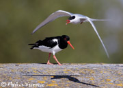 Haematopus ostralegus, (IN)Eurasian Oystercatcher, (EN) , (US), (FI) meriharakka, (DE) Austernfischer, (SV) strandskata, (FR) Huîtrier pie, (ES) Ostrero Euroasiático, (CA) -, (IT) Beccaccia di mare, (NL) Scholekster, (DA) -, (NO) no, (PT) ostrygojad