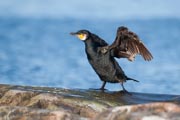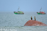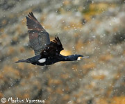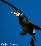 Phalacrocorax carbo, (IN)Great Cormorant, (EN) , (US), (FI) merimetso, (DE) Kormoran, (SV) Storskarv, (FR) Grand Cormoran, (ES) Cormorán grande, (CA) -, (IT) Marangone, (NL) Grote Aalscholver, (DA) -, (NO) no, (PT) kormoran