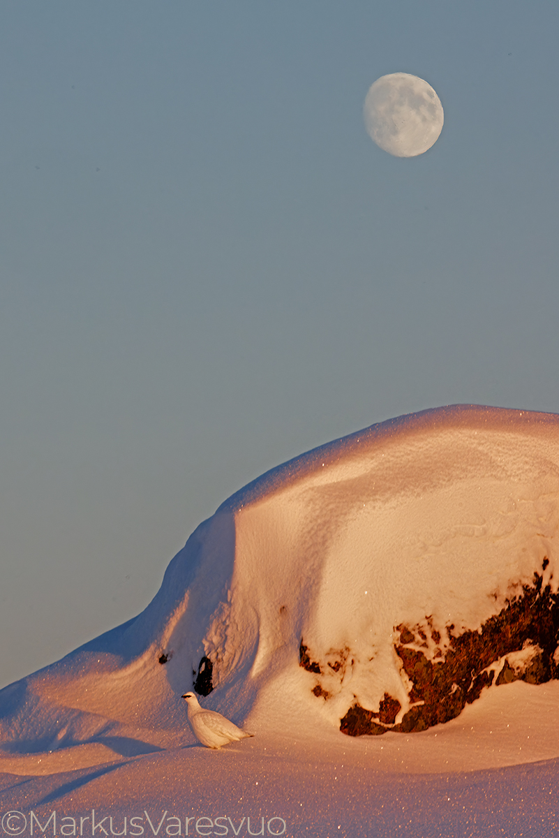 Picture of the week shows a male Ptarmigan and the Moon. Ohessa tuoreen tunturipöllökirjan kansi. Kirjan kuvituksesta vastaavat Jorma Luhta ja Markus Varesvuo. Kirjan teksti on Jorma Luhdan taattua kädenjälkeä ja kirjan mielenkiintoisen faktaosuuden on tehnyt Pertti Koskimies. Kirjaa saa ostaa suoraan tekijöiltä signeerattuna ja numeroituna. Tilausohjeet alla: Tilaa omasi hintaan 29 eur sis alv + toimituskulut osoitteesta markus.varesvuo@lintukuva.fi Sähköpostiin pakolliset tiedot: TILAAJAN NIMI, OSOITE JA PUHELINNUMERO. Laskutus tapahtuu pian tilauksesi jälkeen ja toimitus tapahtuu viikon 37 lopulta alkaen.