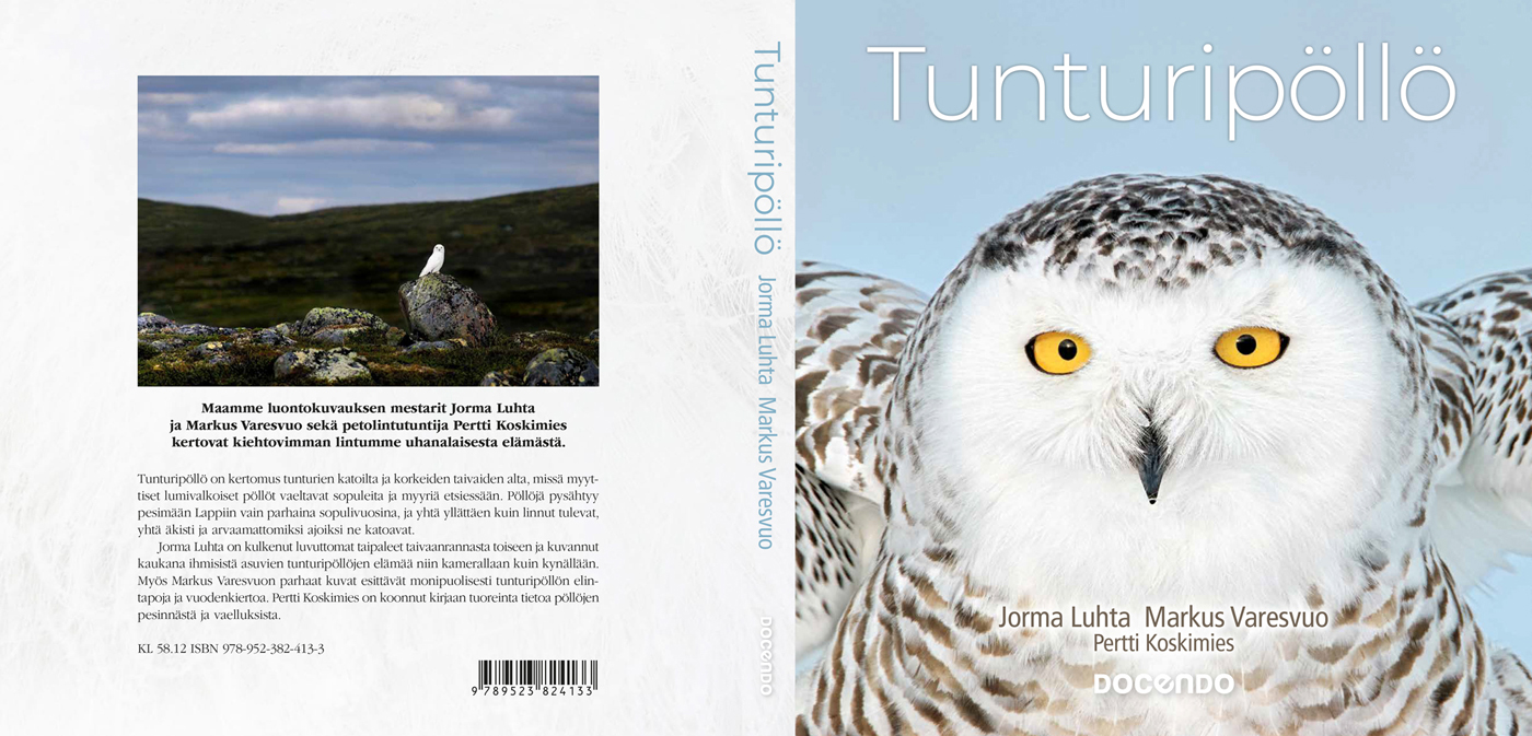 Picture of the week shows a Lapwing in flight. Ohessa tuoreen tunturipöllökirjan kansi. Kirjan kuvituksesta vastaavat Jorma Luhta ja Markus Varesvuo. Kirjan teksti on Jorma Luhdan taattua kädenjälkeä ja kirjan mielenkiintoisen faktaosuuden on tehnyt Pertti Koskimies. Kirjaa saa ostaa suoraan tekijöiltä signeerattuna ja numeroituna. Tilausohjeet alla: Tilaa omasi hintaan 29 eur sis alv + toimituskulut osoitteesta markus.varesvuo@lintukuva.fi Sähköpostiin pakolliset tiedot: TILAAJAN NIMI, OSOITE JA PUHELINNUMERO. Laskutus tapahtuu pian tilauksesi jälkeen ja toimitus tapahtuu viikon 37 lopulta alkaen.