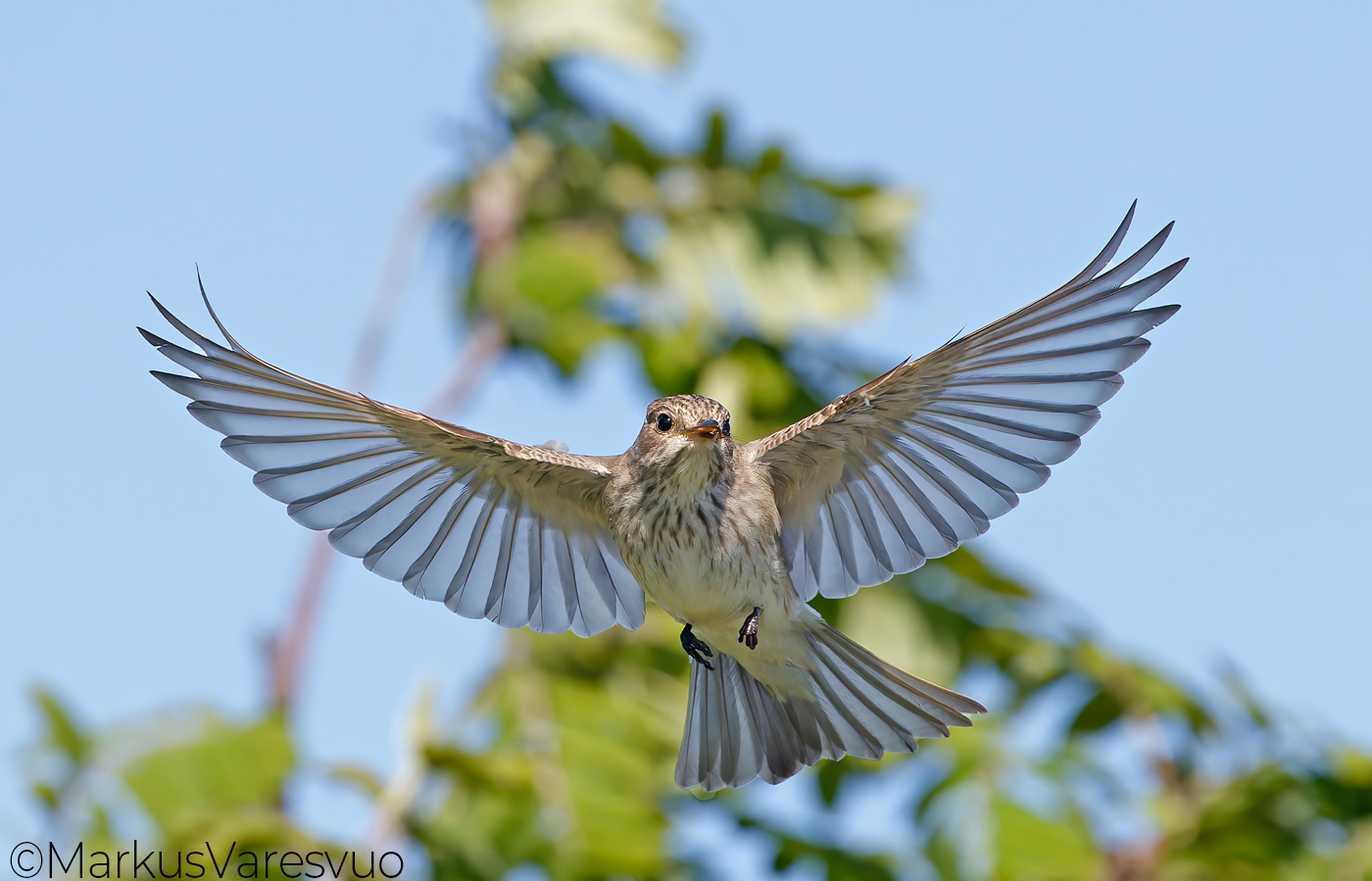 Spotted Flycatcher (Muscicapa striata) in flight.