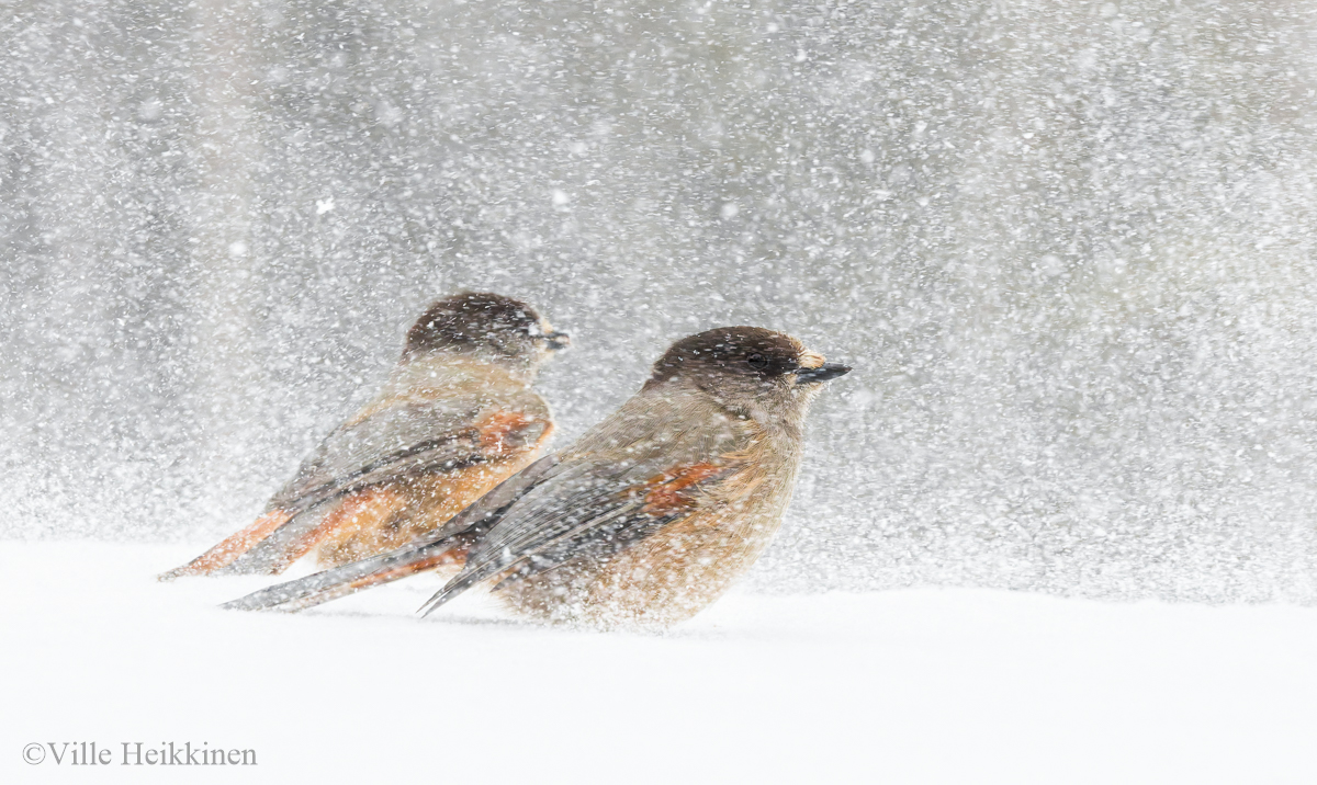 Kuukkelit tuiskussa (Perisoreus infaustus) Siberian Jay