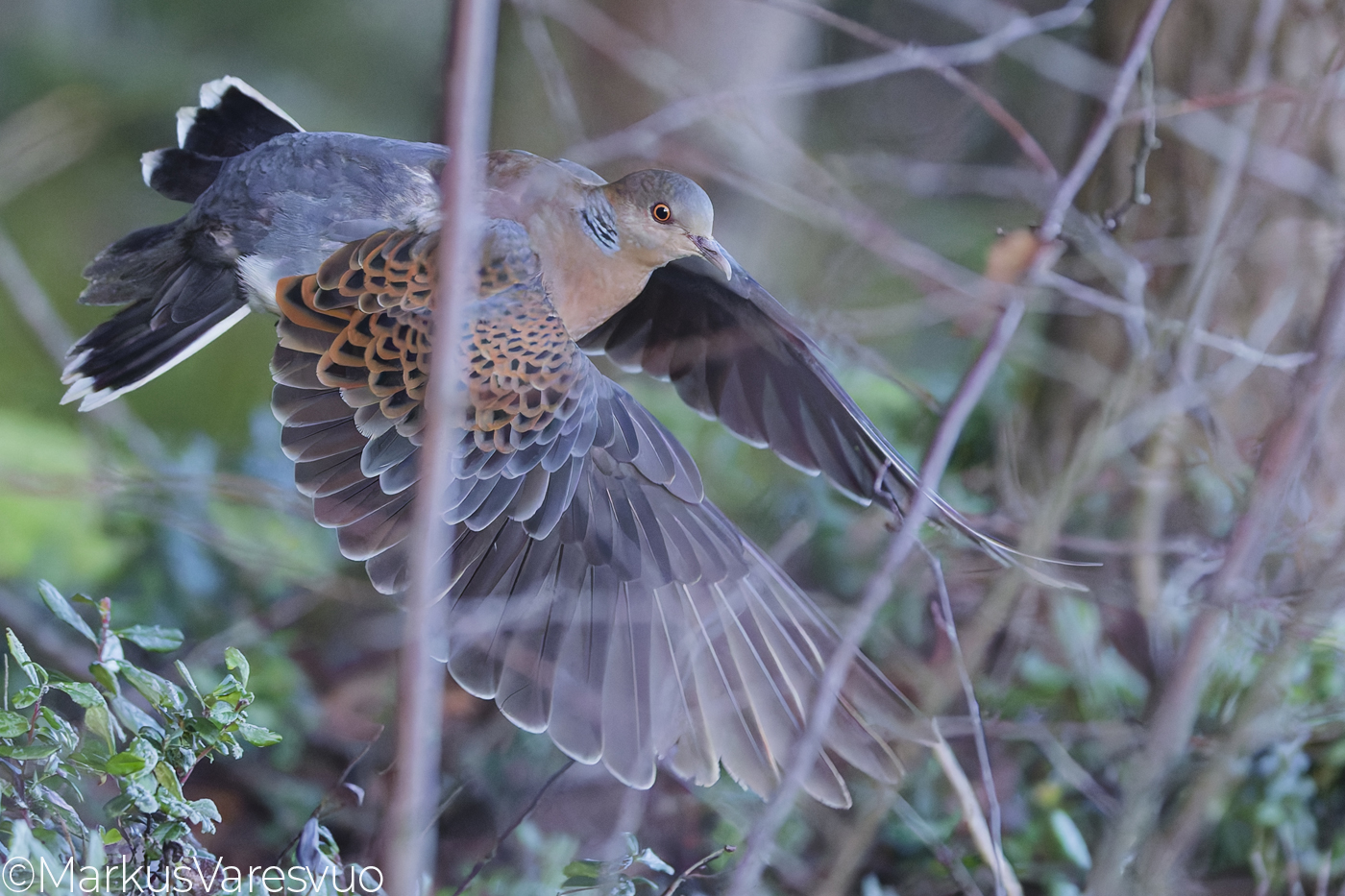 19 November 2025 Helsinki Finland. Idänturturikyyhky. Vähän on risuja edessä, mutta tuntomerkit näkyy... Canon R1+ RF100-500mm F4.5-7.1 (186mm), 1/5300s, F5.0, ISO20000.