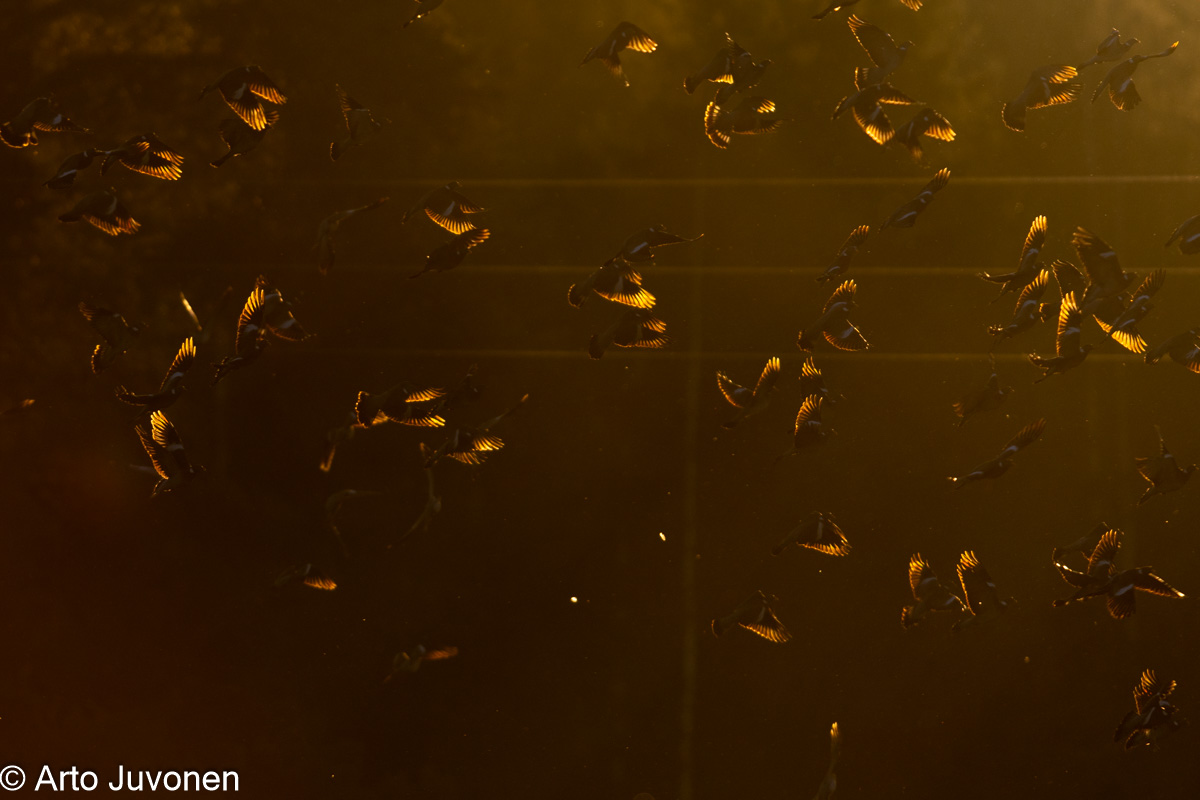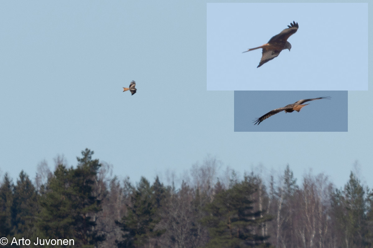 Yritin viikolla kahdessa tilanteessa vastavalokuvia nousevan auringon aikaan. Toisessa tilanteessa todella suuri sepelkyyhkyparvi ruokaili paikassa, jossa taustana oli tumma metsä. Aivan haluamaani kuvaa en saanut, sillä vain lentoon nousevan suurparven reuna käväisi nousevan auringon suunnassa. Syntyneessä kuvassa minua häiritsevät taustalle jääneet avojohdot, mutta kun ne vaimoni mielestä olivat “just hyvät”, niin olkoon tässä viikkarina sitten. Viikko sitten valitin ohariksi jäänyttä isohaarahaukkaa kotilahdella. Paikko tuli heti kahden päivän päästä, kun noin viiden tunnin rupeama rantakalliolla päättyi sen minun ensimmäisen tosisponden isohaarahaukan näkymiseen. Toki paikka oli sama kuin Heikki Pakkaln sunnuntain havainnossa ja lintukin varmaan sama, mutta kun olin suorittamassa joka-toinen-aamu vakiotani ilman mitään ajatusta tai toivetta isohaarahaukan suhteen, niin nyt tuli ehdottomasti lisäpiste PSLY:n alueen tosispontaanien listalle, laskujeni mukaan numero 291. Ei taida tulla kolmesataa täyteen tässä elämässä… Viime syyskuussa liityin (taas) paikallisiin tiedotusryhmiin, mutta nyt harkitsen vakavasti peruutusta. Taskussa hälyttävät tiedot häiritsevät vapaata retkeilyä. Olisi paljon kivempi mennä vaikkapa Kanteleelle ilman että tietäisi, mitä siellä on tarjolla. Moni muu alueen ahkerimmista retkeilijöistä (Mauri Leivo, Henrik Westerholm, Teemu Lehtiniemi, Miikka Leinonen, Heikki Pakkala) ovat poissa tiedostuskanavilta varmaan samojen mietteiden lopputulemana.