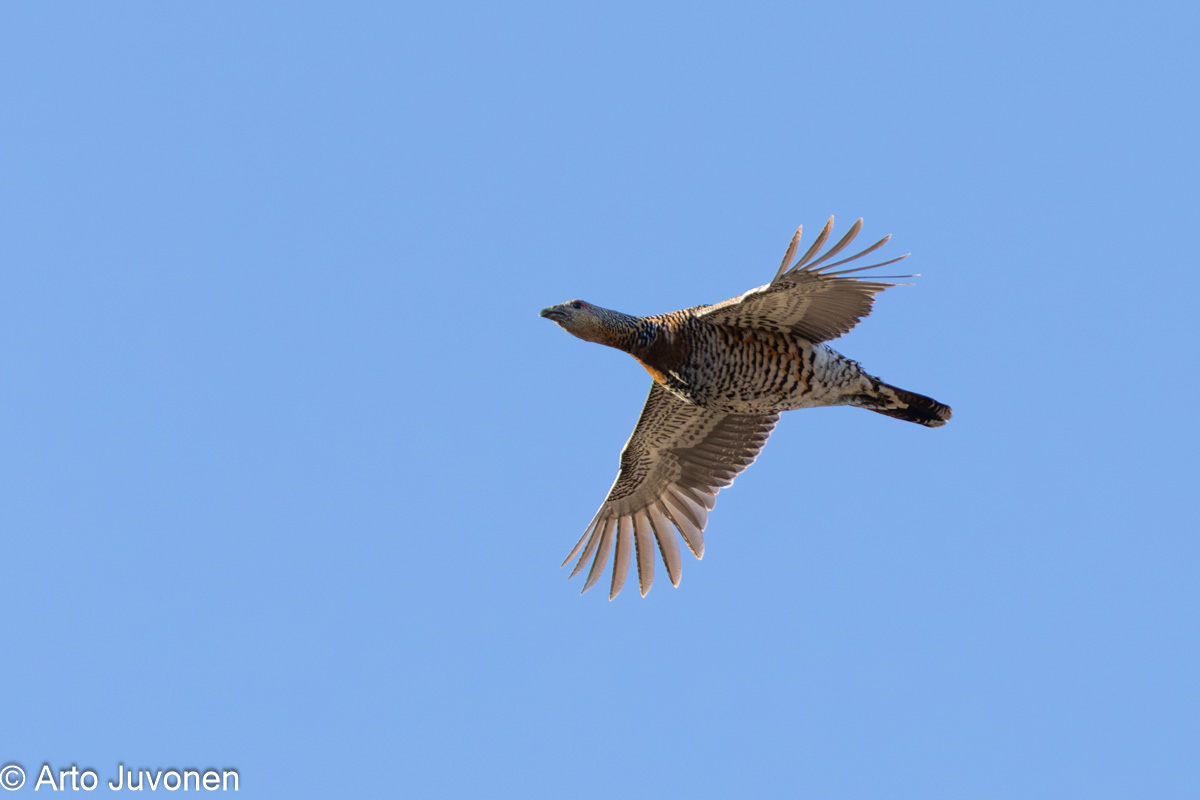Olin ulkosaariston reunalla Loviisan Hudön riutalla, kun näin kohti tulevan ison linnun idän suunnasta meren yllä. Hämmästyin melkoisesti, kun tunnistin meren selkää ylittävän linnun koppeloksi. Se tuli suoraan yli, jolloin nopealla vedolla sain pienen sarjan kuvia, mutta zoomia en ehtinyt säätää.